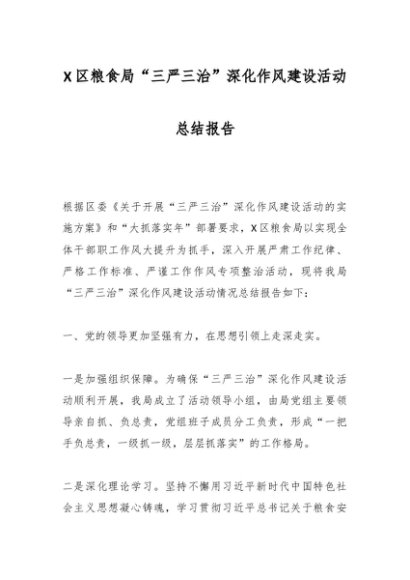 / X区粮食局“三严三治”深化作风建设活动总结报告