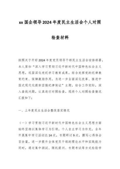 / xx国企领导2024年度民主生活会个人对照检查材料