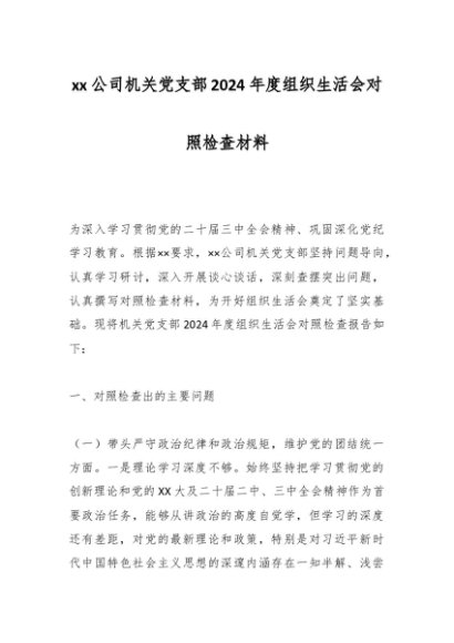 / xx公司机关党支部2024年度组织生活会对照检查材料