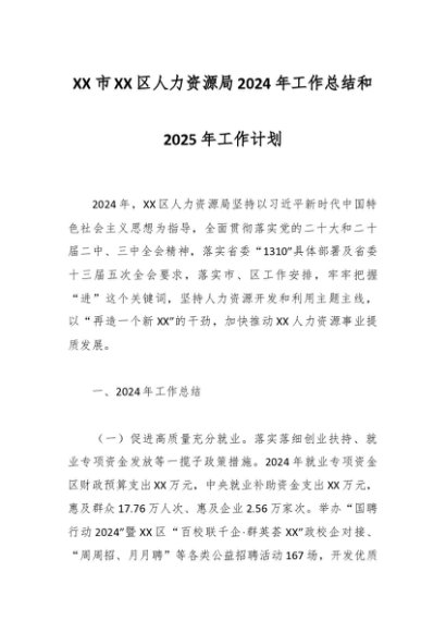 / XX市XX区人力资源局2024年工作总结和2025年工作计划