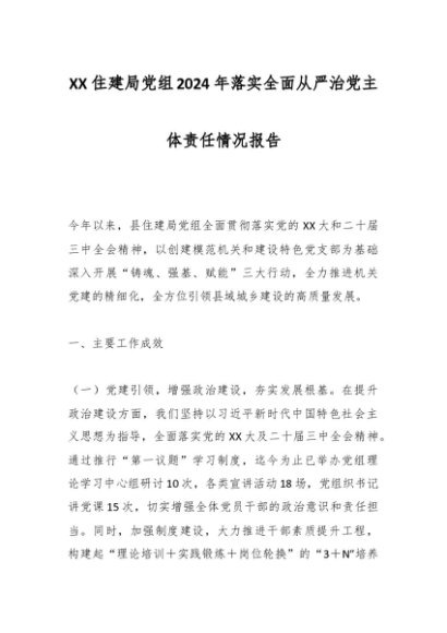 / XX住建局党组2024年落实全面从严治党主体责任情况报告