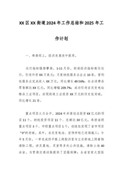 / XX区XX街道2024年工作总结和2025年工作计划