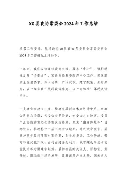 / XX县政协常委会2024年工作总结
