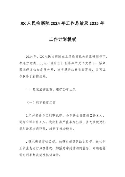 / XX人民检察院2024年工作总结及2025年工作计划模板