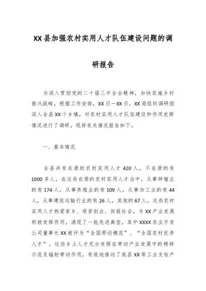 / XX县加强农村实用人才队伍建设问题的调研报告