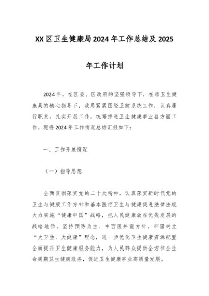 / XX区卫生健康局2024年工作总结及2025年工作计划