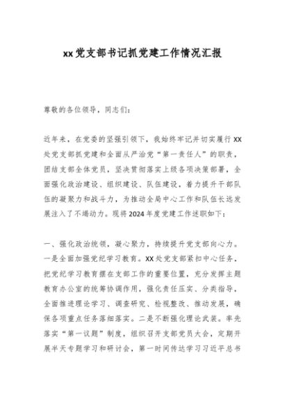 / xx党支部书记抓党建工作情况汇报