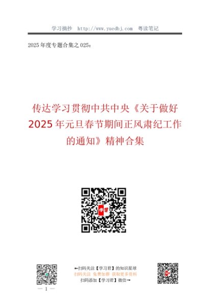 / 2025年度专题合集025:传达学习贯彻中共中央《关于做好2025年元旦春节期间正风肃纪工作的通知》精神合集(7篇)