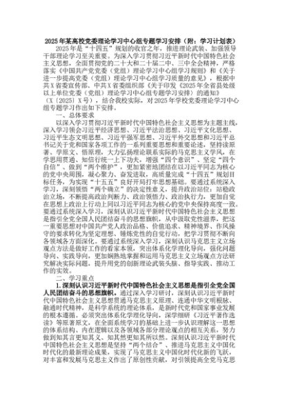 / 2025年某高校党委理论学习中心组专题学习安排(附:学习计划表)