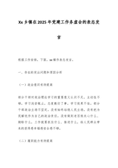 / Xx乡镇在2025年党建工作务虚会的表态发言