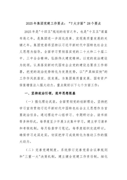 / 2025年集团党建工作要点:“7大方面”28个要点