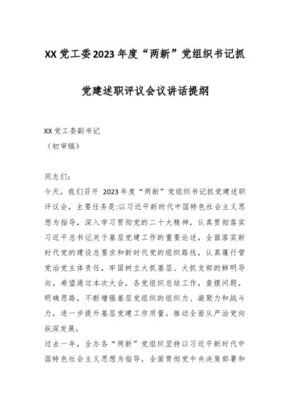 / XX党工委2023年度“两新”党组织书记抓党建述职评议会议讲话提纲.