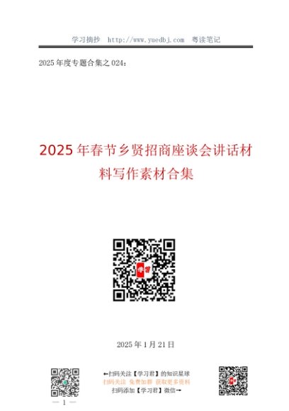 / 2025年度专题合集024:2025年春节乡贤招商座谈会讲话材料写作素材合集(7篇)