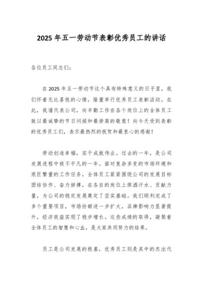 / 2025年五一劳动节表彰优秀员工的讲话