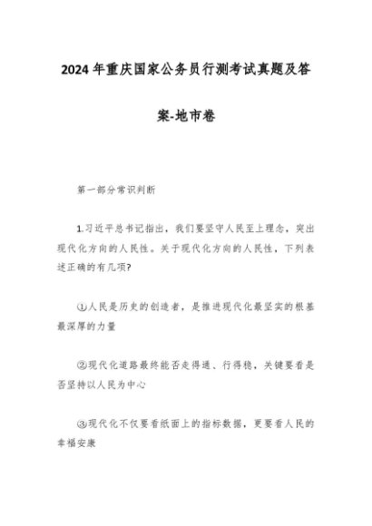 / 2024年重庆国家公务员行测考试真题及答案-地市卷