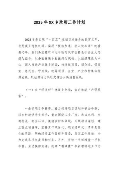 / 2025年XX乡政府工作计划