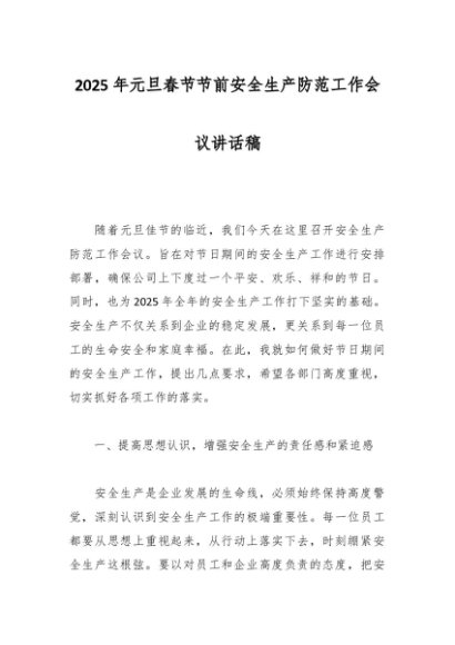/ 2025年元旦春节节前安全生产防范工作会议讲话稿