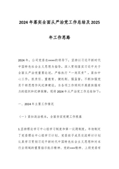 / 2024年落实全面从严治党工作总结及2025年工作思路 (1)