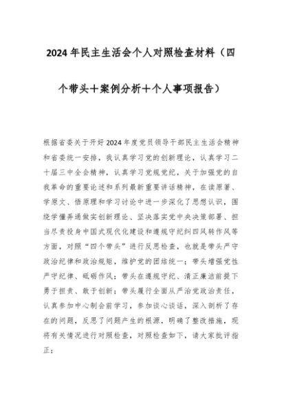 / 2024年民主生活会个人对照检查材料(四个带头+案例分析+个人事项报告)