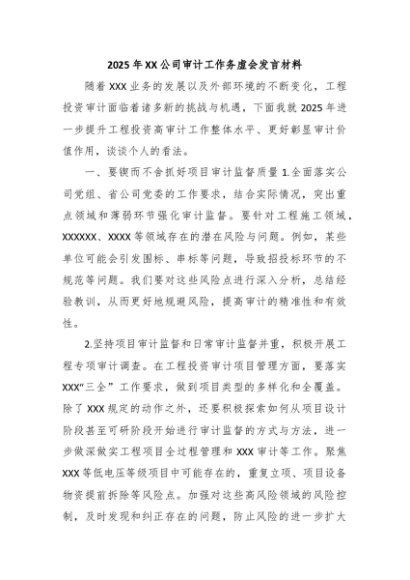 / 2025年XX公司审计工作务虚会发言材料