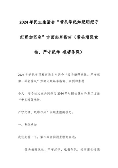 / 2024年民主生活会“带头学纪知纪明纪守纪更加坚定”方面起草指南(带头增强党性、严守纪律 砥砺作风)