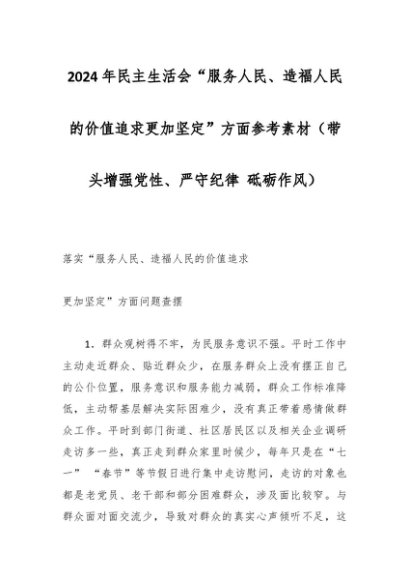 / 2024年民主生活会“服务人民、造福人民的价值追求更加坚定”方面参考素材(带头增强党性、严守纪律 砥砺作风)
