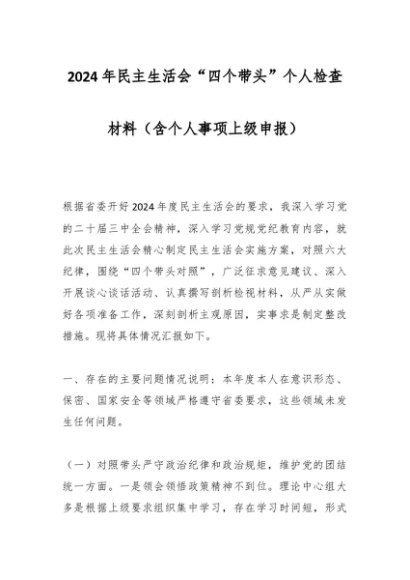 / 2024年民主生活会“四个带头”个人检查材料(含个人事项上级申报)