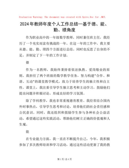 / 2024年教师年度个人工作总结—基于德、能、勤、绩角度