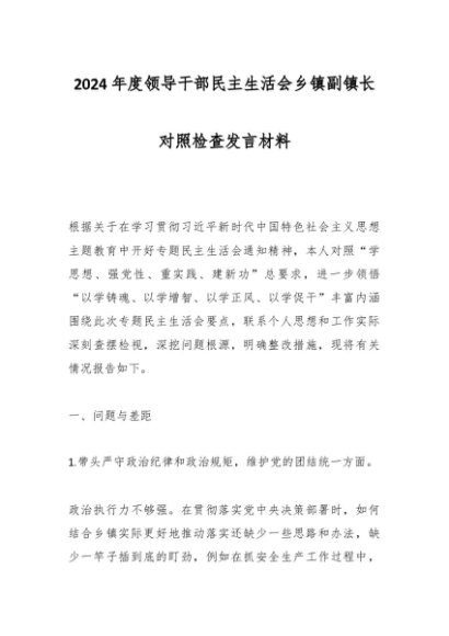 / 2024年度领导干部民主生活会乡镇副镇长对照检查发言材料
