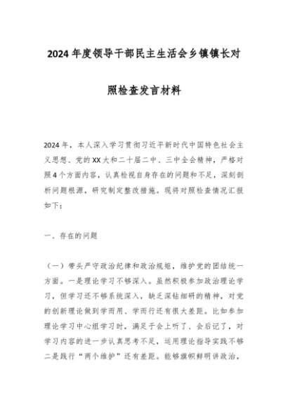 / 2024年度领导干部民主生活会乡镇镇长对照检查发言材料
