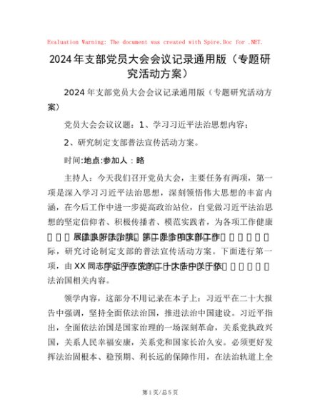 / 2024年支部党员大会会议记录通用版(专题研究活动方案)