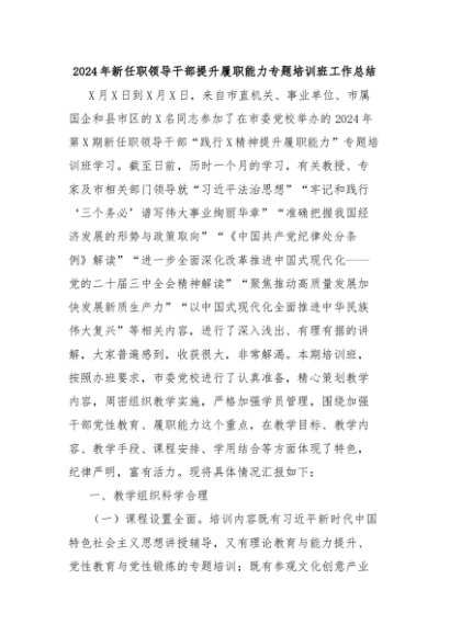 / 2024年新任职领导干部提升履职能力专题培训班工作总结