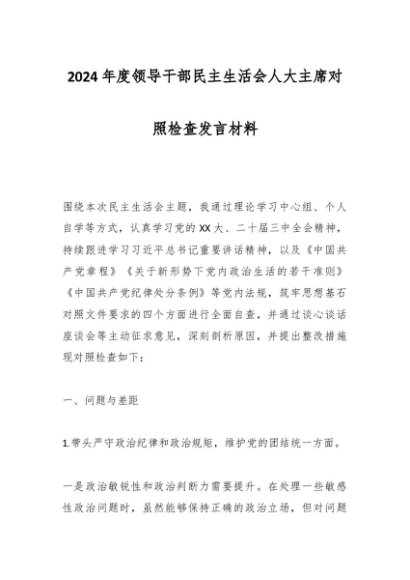 / 2024年度领导干部民主生活会人大主席对照检查发言材料