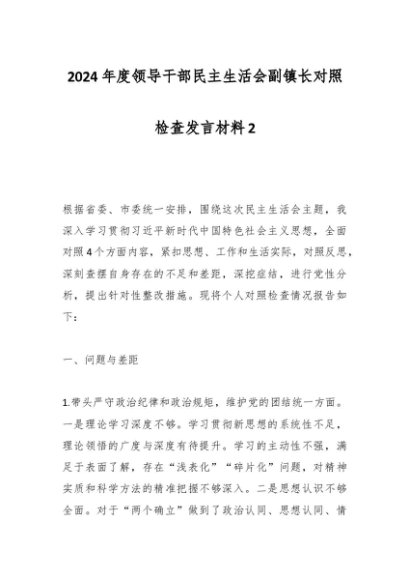 / 2024年度领导干部民主生活会副镇长对照检查发言材料2