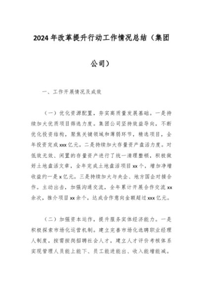 / 2024年改革提升行动工作情况总结(集团公司)