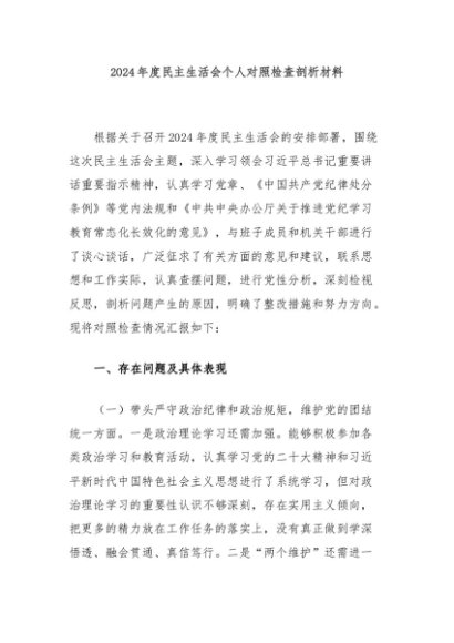 / 2024年度民主生活会个人对照检查剖析材料