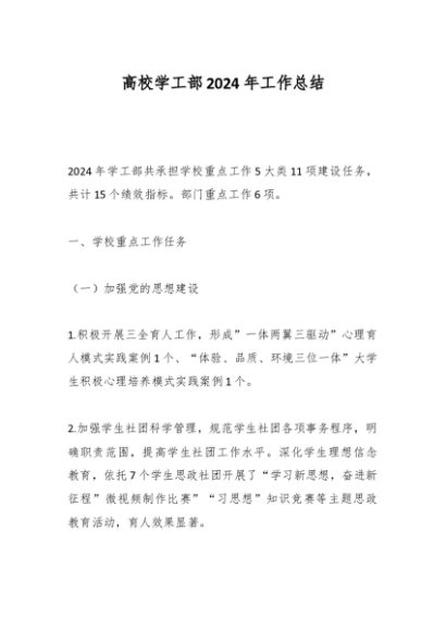 / 2024年度总结∣年终总结:高校学工部2024年工作总结