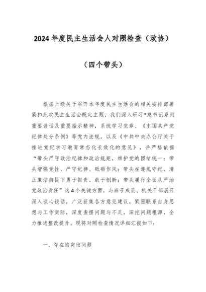 / 2024年度民主生活会人对照检查(政协)(四个带头)