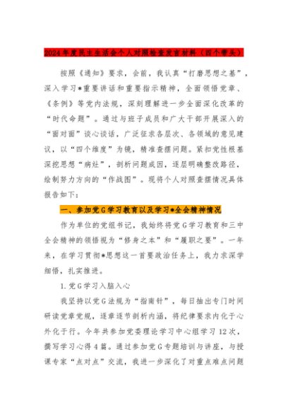/ 2024年度民主生活会个人对照检查发言材料(四个带头)