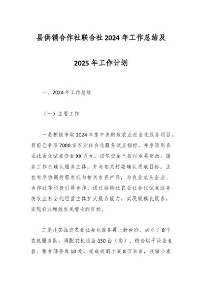 / 2024年度总结∣年终总结:县供销合作社联合社2024年工作总结及2025年工作计划