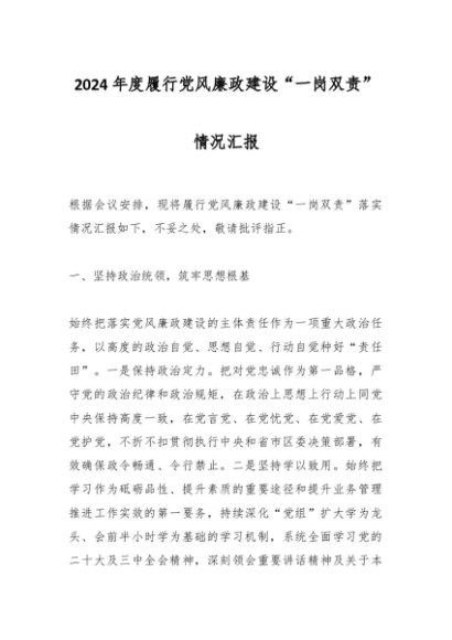 / 2024年度履行党风廉政建设“一岗双责”情况汇报