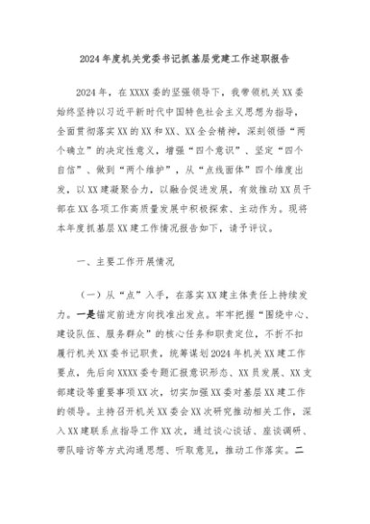 / 2024年度机关党委书记抓基层党建工作述职报告