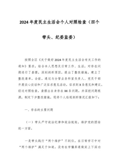 / 2024年度民主生活会个人对照检查(四个带头、纪委监委)