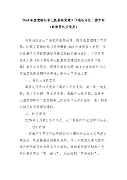 / 2024年度党组织书记抓基层党建工作述职评议工作方案(财政局机关党委)