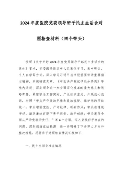 / 2024年度医院党委领导班子民主生活会对照检查材料(四个带头)