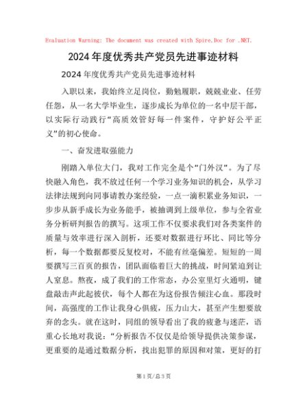 / 2024年度优秀共产党员先进事迹材料
