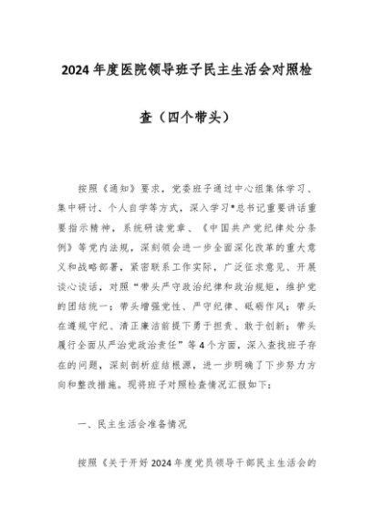 / 2024年度医院领导班子民主生活会对照检查(四个带头)