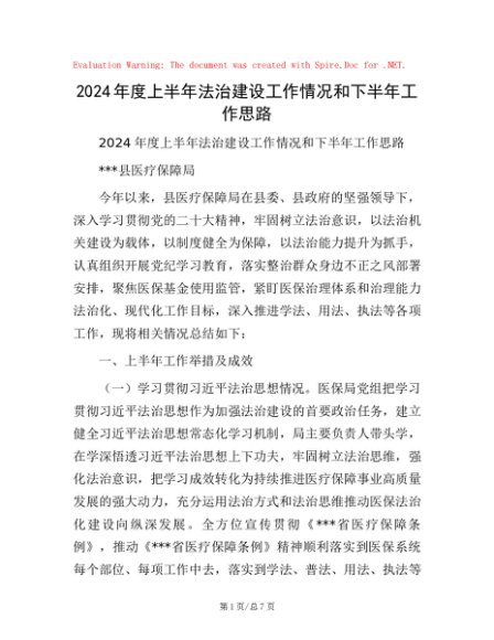 / 2024年度上半年法治建设工作情况和下半年工作思路