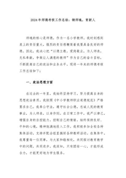 / 2024年师德考核工作总结:铸师魂,育新人