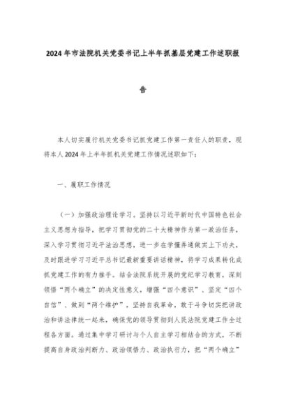 / 2024年市法院机关党委书记上半年抓基层党建工作述职报告
